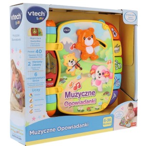 Podczas przewracania stron, przesuwajcie oraz obracajcie ruchome elementy, aby rozwijać paluszki! Aby zabawy było jeszcze więcej, naciskajcie klawisze pianinka, aby rozpoznać kolory i nazwy instrumentów. Na bajeczki przyszedł czas, zwierzątka oprowadzą was! Dla dzieci w wieku od 6 miesiąca.