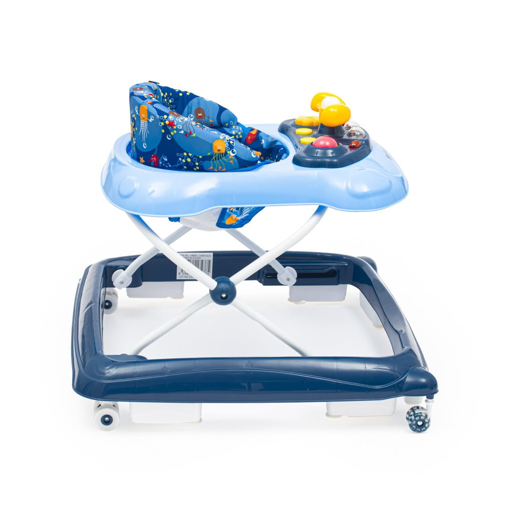 Chodzik został wyposażony w wygodne, specjalnie wyprofilowane siedzonko które zapewnia odpowiednią postawę dla kręgosłupa. Wielofunkcyjny panel zabawowy: z efektami świetlnymi, kierownicą z klaksonem, którą można obracać, kwiatek, grzechotkę, dwa przyciski, które grają melodie i dwa światełka. Piękny chodzik z zabawkami oczaruje małych odkrywców i pozwoli im bawić się jeszcze dłużej. Jeździk został wyposażony w specjalny system zabezpieczający przed wywrotką, który zapewni komfort i bezpieczeństwo maluchowi.