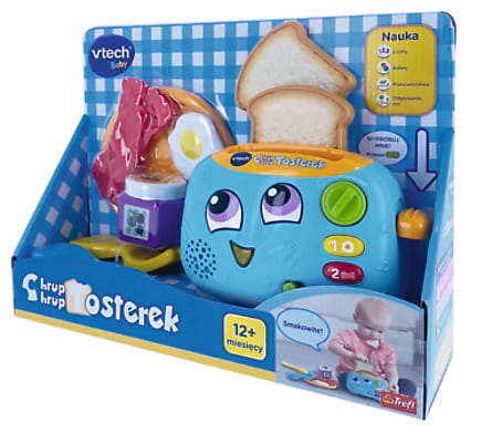 Chrup Chrup Tosterek to elektroniczna edukacyjna zabawka VTech. Przygotuj przepyszne śniadanie w towarzystwie sympatycznego, niebieskiego tostera!