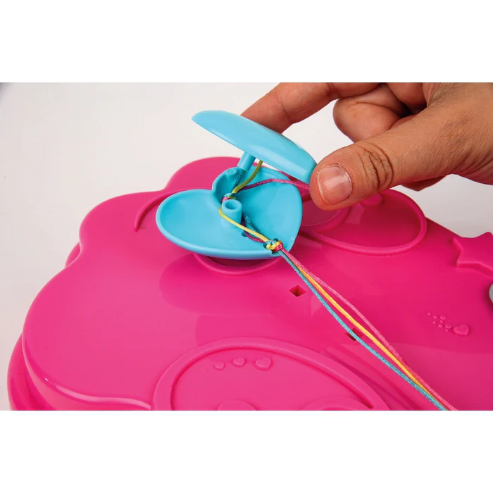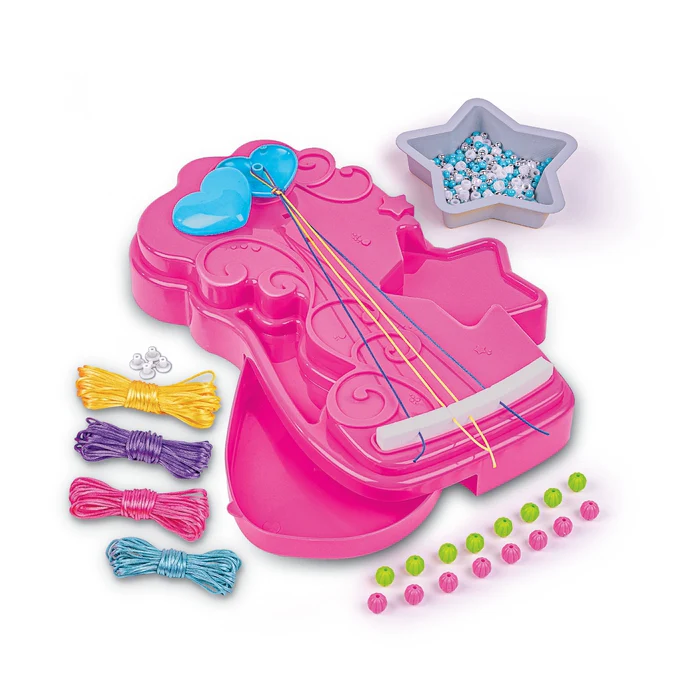Zestaw zawiera ramkę, masę kolorowych koralików i super szykowne sznureczki, z których można tworzyć wiele kreacji.