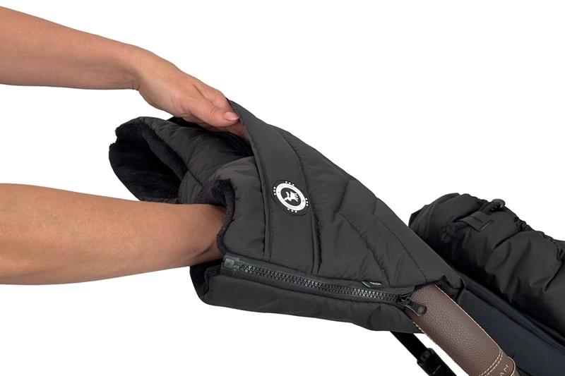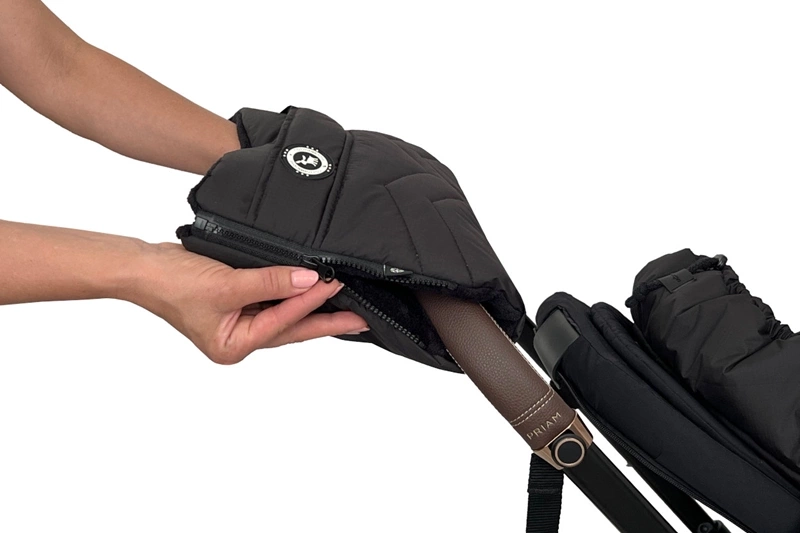 Uniwersalna mufka z kieszonką, przeznaczona do wózków o standardowej rączce. Pasuje zarówno na damskie, jak i męskie dłonie. Mocowana do rączki wózka za pomocą suwaków oraz pasków z rzepami, zapewnia stabilne utrzymanie na miejscu.