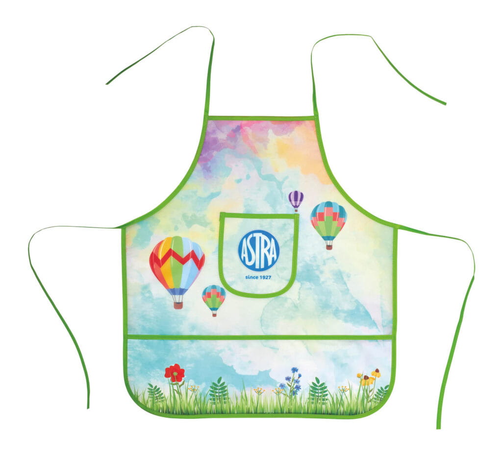 Fartuszek ochronny do plac plastycznych zabezpiecza ubrania przed zabrudzeniami.