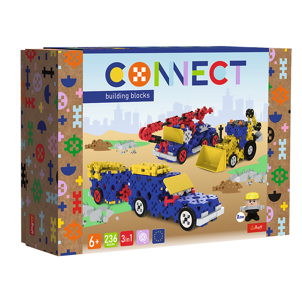 W zestawie znajdziesz 236 klocków i dedykowaną zabawkę o imieniu RON ,ruchome części i ozdoby.Zbuduj z nich konstrukcje i rozwiń swoją fantazję zbuduj to co chcesz i bądź swoim budowniczym .Klocki CONNECT są idealne dla dzieci lubiące budować i kreować fantazję . Zmień swój świat i odkryj go na nowo z naszymi klockami .