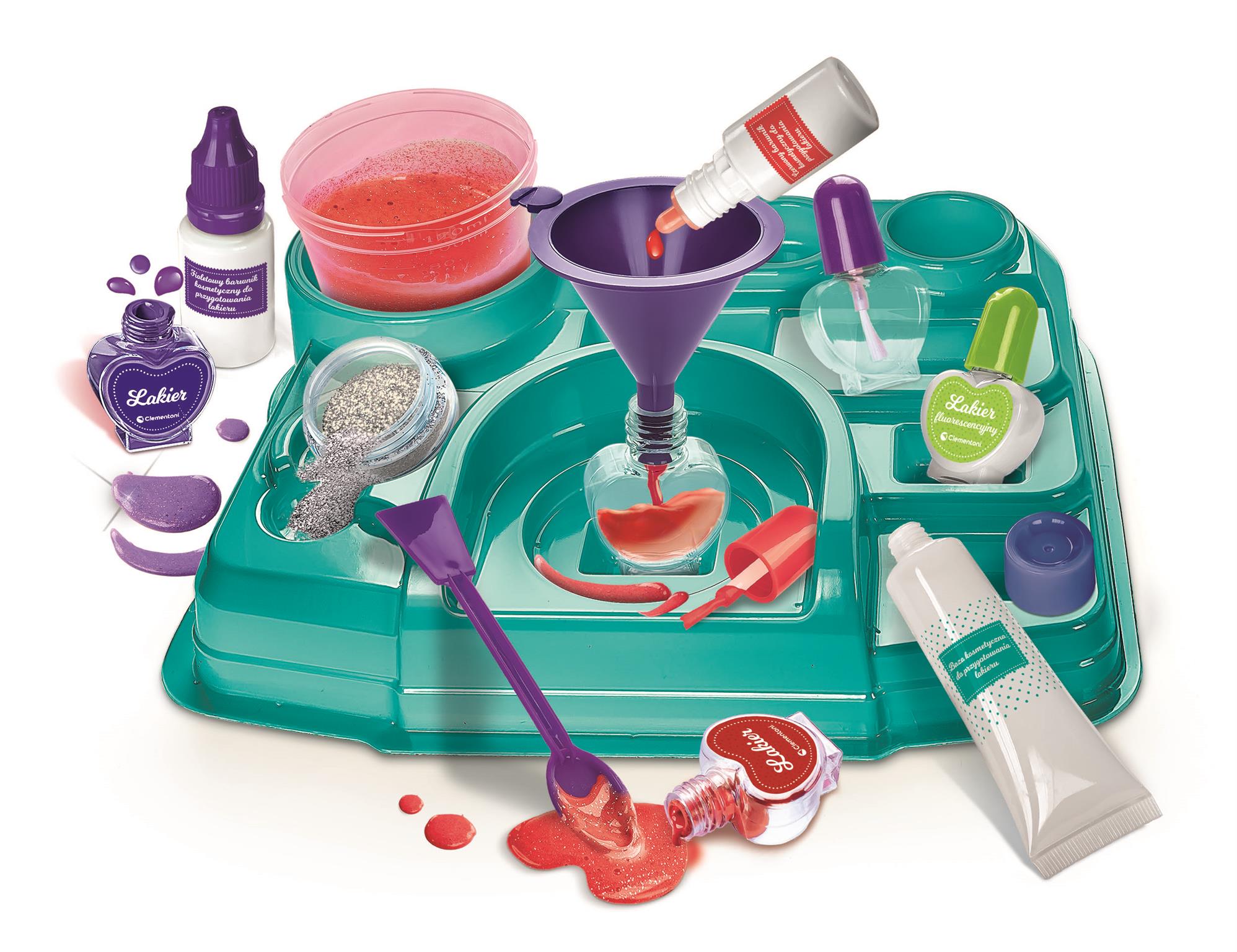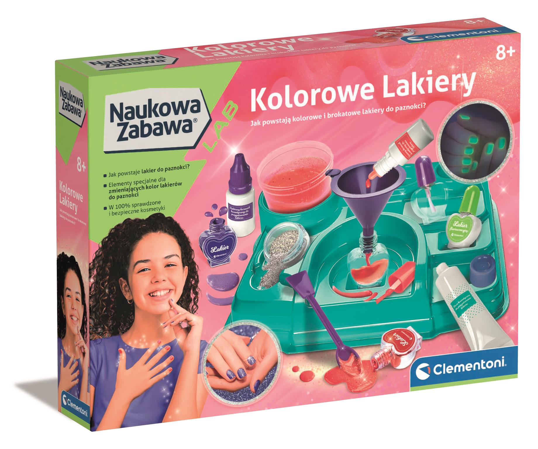 Zestaw naukowy do wesołego i kreatywnego odkrywania wszystkich tajników pielęgnacji i zdobienia paznokci. Praktyczny stolik ułatwia mieszanie dostarczonych w zestawie baz i barwników oraz tworzenie kolorowych lakierów. Naklejki i brokat dodatkowo uatrakcyjniają zabawę i pozwalają uwolnić wyobraźnię! Zestaw zawiera akcesoria niezbędne do wykonywania doświadczeń. Instrukcja zawiera praktyczne informacje naukowe i wiele ciekawostek o zdobieniu paznokci!