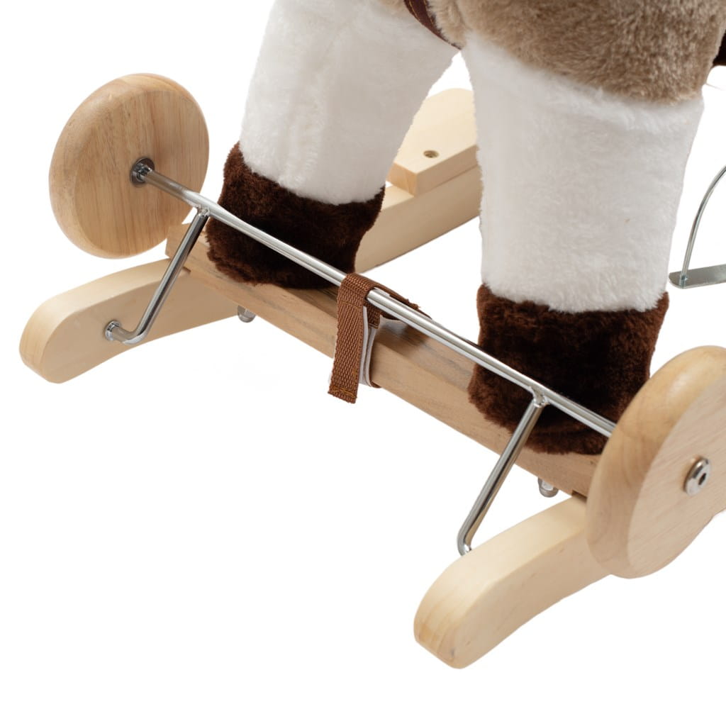 Dzięki solidnym kółkom konik może być przemieszczany po podłodze, co dodatkowo urozmaica zabawę.Wbudowana melodia sprawia, że bujanie się na koniku to jeszcze większa frajda, stymulując rozwój zmysłu słuchu i zachęcając dziecko do aktywnej zabawy Wykonany z wysokiej jakości, miękkich i przyjemnych w dotyku materiałów, jest idealny do przytulania i zabawy. Konik odtwarza także delikatną melodię, która umila czas dziecku i pomaga w tworzeniu wyjątkowej atmosfery podczas zabawy. Dodatkowo, produkt spełnia wszystkie wymagane europejskie normy bezpieczeństwa, co zapewnia rodzicom spokój ducha.