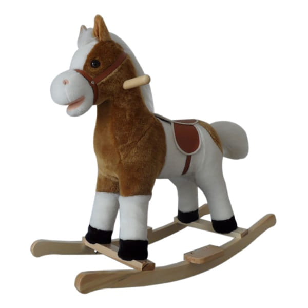 Piękny konik na biegunach PlayTo powstał z myślą o dzieciach kochających bujanie i przygodę. Uszyty jest z miękkiego i bardzo przyjemnego w dotyku pluszu. Po naciśnięciu ucha konik porusza wesoło pyszczkiem i ogonem, rży lub gra wesołą muzykę. Baterie wkładane są do pokrowca znajdującego się na brzuchu. Zabawka pomaga dziecku rozwijać koordynację ruchów oraz pobudza wyobraźnię. wychylne można łatwo odkręcić.
