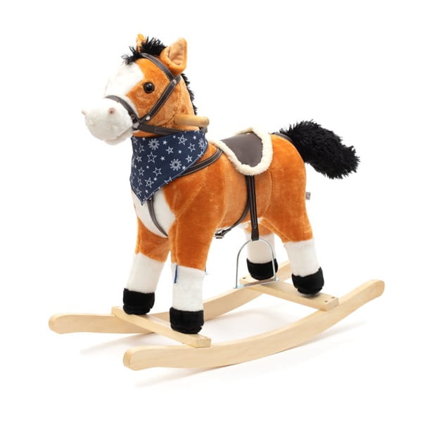 Konik na biegunach Baby Mix został zaprojektowany z myślą o dzieciach lubiących przygody. Przypomina prawdziwe zwierzątko, co sprawi, że dziecko poczuje się jak prawdziwy jeździec. Konik wykonany został z miękkiego pluszu. Bujak wyposażony jest w drewniane płozy, wyprofilowane w taki sposób, by nie dopuścić do przewrócenia podczas zabawy. Wygodne siodło, kantar, strzemiona, drewniane rączki i płozy zapewnią komfort i bezpieczeństwo podczas beztroskiego bujania maluszka. Konik Baby Mix posiada na szyi ozdobną apaszkę, a po obu stronach jego głowy umieszczono drewniane uchwyty. Zwierzątko podczas zabawy wydaje z siebie odgłosy galopu i porusza pyskiem oraz ogonem, a po naciśnięciu przycisku w jego uchu, odtwarzana jest kowbojska piosenka. Maluszek bawiąc się musi skoordynować ruchy z konikiem co stymuluje jego koordynację ruchową i rozwija wyobraźnię oraz poprawia poczucie równowagi. Schowek z bateriami ukryty jest pod brzuszkiem konika. Trzy baterie AA 1,5 V nie są dołączone do produktu.