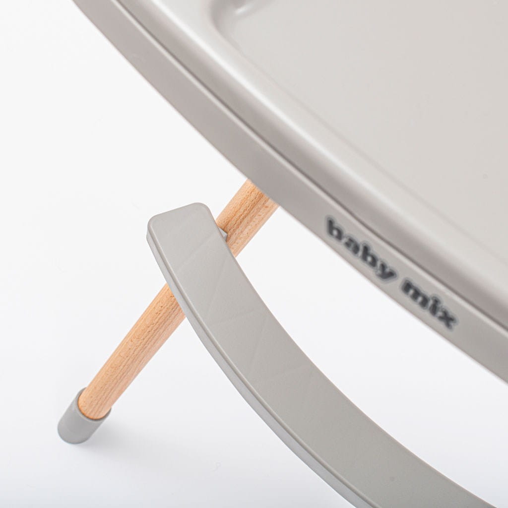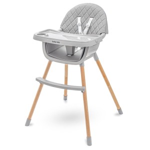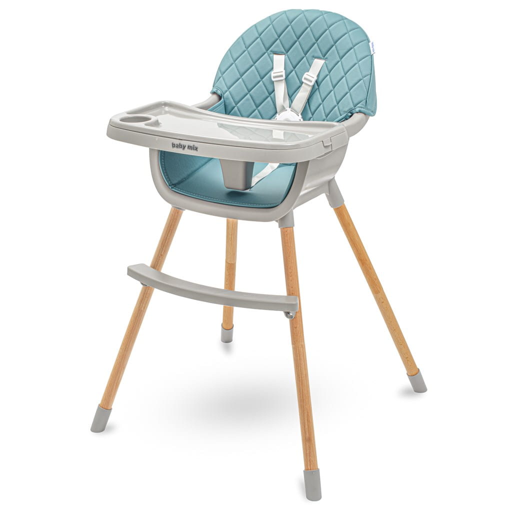 Krzesełko Baby Mix posiada wszystkie funkcje, które ułatwiają codzienne karmienie: regulowaną podwójną tackę, 5-punktowe pasy bezpieczeństwa, zdejmowaną tapicerkę z ekoskóry, podnóżek, materiałowy kosz, antypoślizgowe nóżki. Krzesełko można łatwo przekształcić w niski taboret, zdejmując dolną część nóg. Krzesełko Baby Mix jest odpowiednie dla dzieci w wieku 6-36 miesięcy.