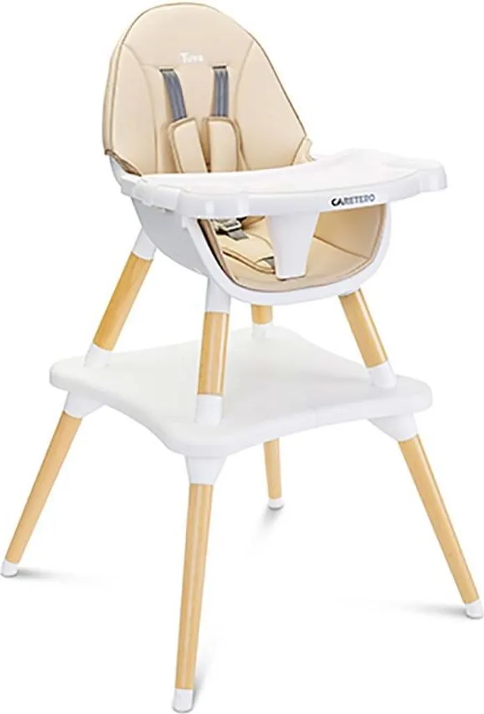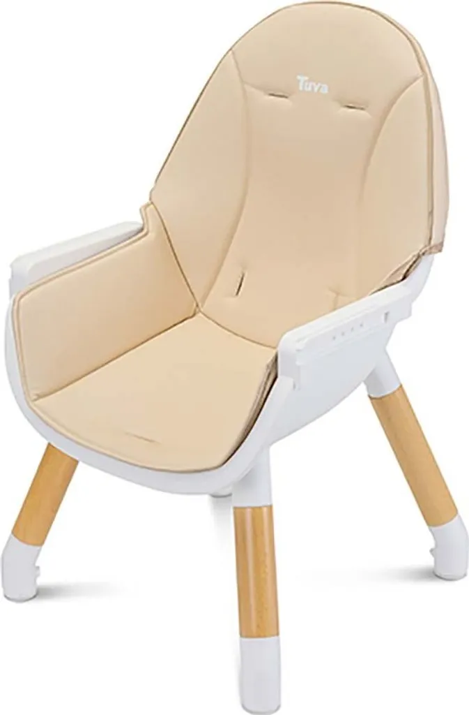 Tuva wykonane zostało z wysokiej jakości materiałów, dzięki czemu jest trwałe i bezpieczne. Posiada pięciopunktowe pasy oraz dodatkowe zabezpieczenie przy tacce, które zapobiega zsunięciu się maluszka. Dbając o komfort dziecka i rodzica, krzesełko posiada podwójną, regulowaną tackę z dwoma miejscami na kubek. Siedzisko jest wyłożone miękką i łatwą w czyszczeniu tapicerką.Natomiast drewniane nogi zakończone sąantypoślizgowymi nakładkami, które w pełni zabezpieczają przed porysowaniem podłogi.