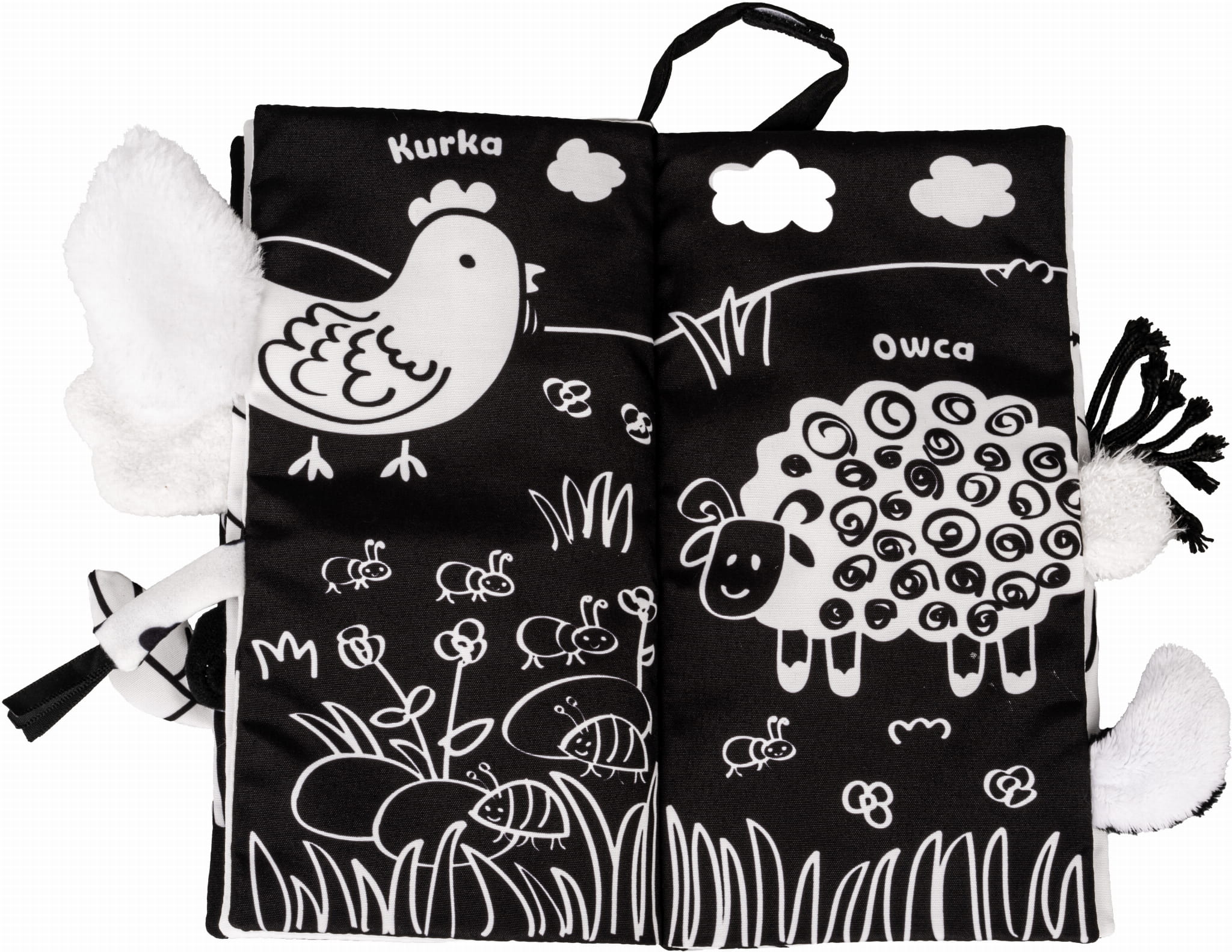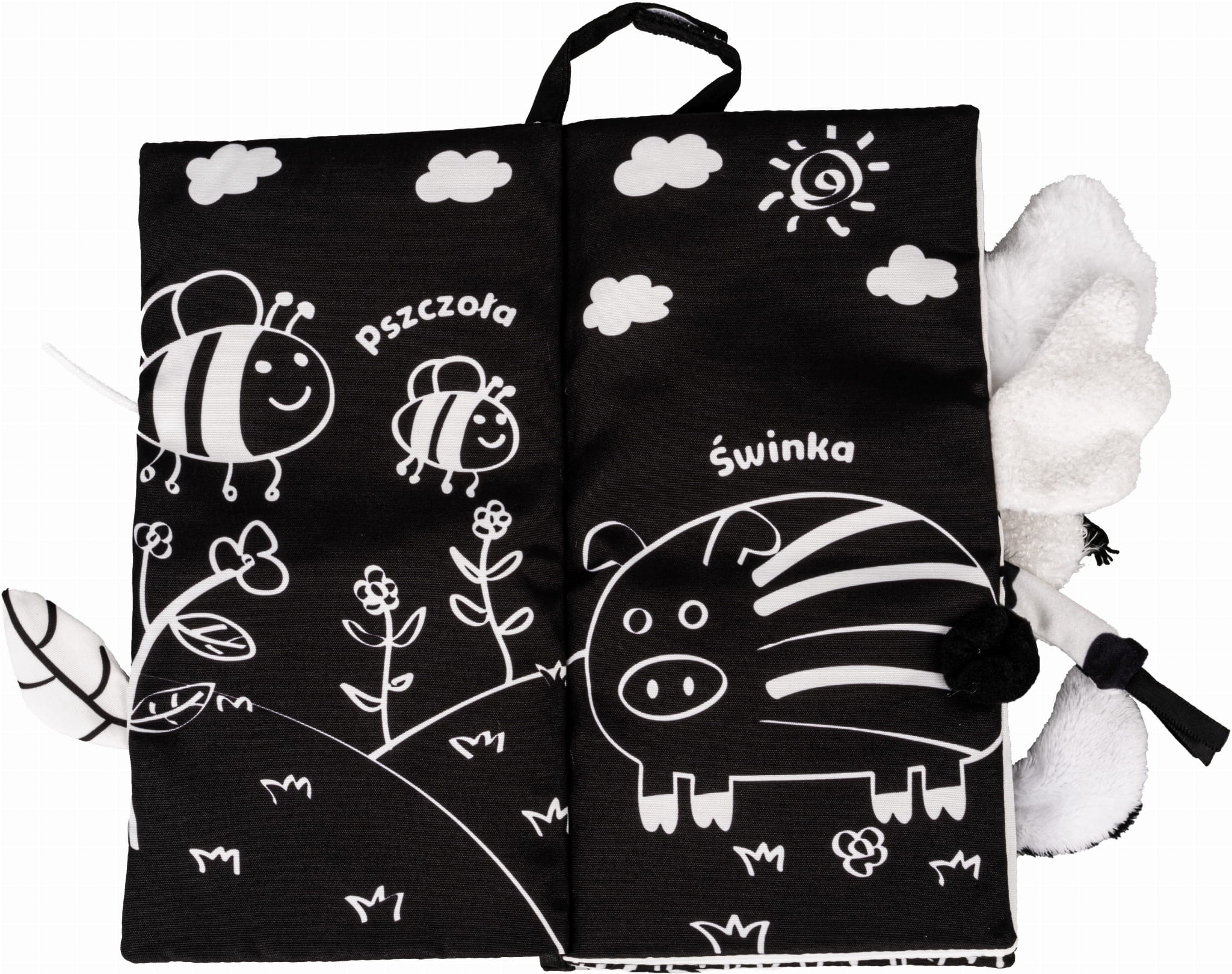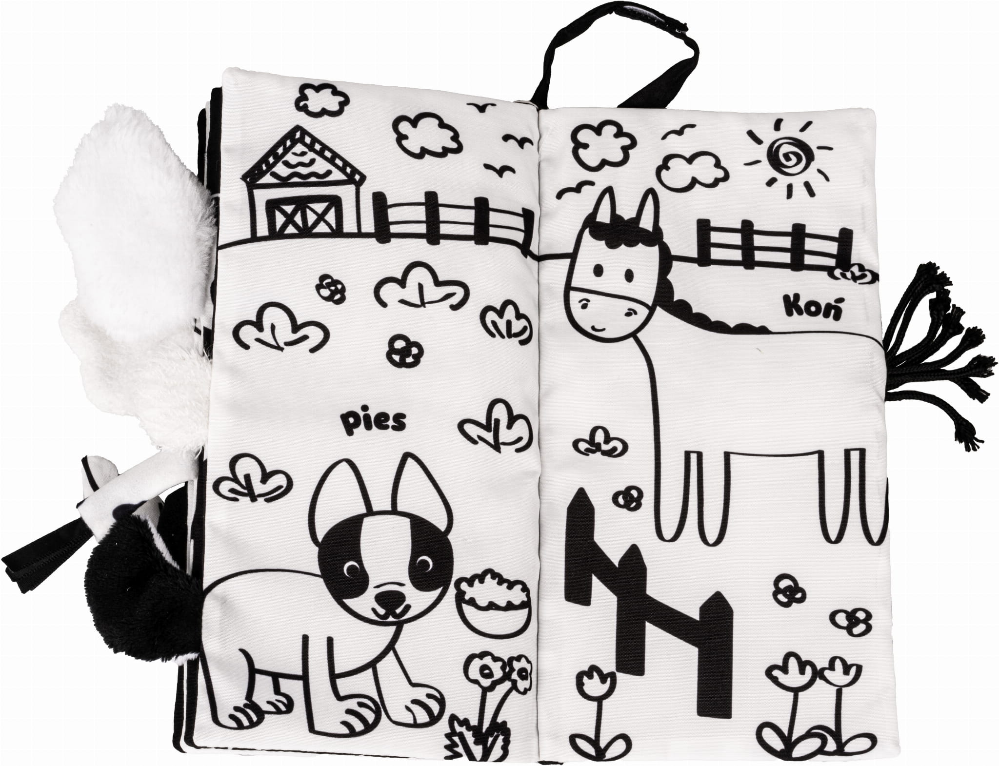 W tej kontrastowej książeczce pochowały się różne zwierzaki! Czy uda Ci się rozpoznać do kogo należy każdy z ogonków? Różnią się one fakturą materiałów, z których zostały wykonane, przez co stymulują zmysł dotyku maluszka. Szeleszcząca okładka uatrakcyjni zabawę.