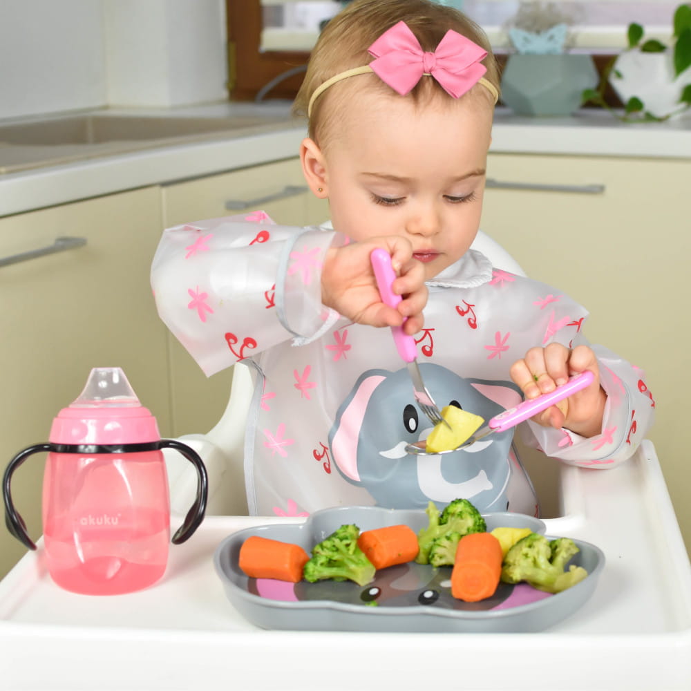Przeznaczony dla dzieci powyżej dziewiątego miesiąca życia. Idealny w czasie spaceru jak i w domu, np. podczas zabawy. Wygodne szerokie uchwyty i ergonomiczny kształt ułatwiają trzymanie kubeczka w małych rączkach, a miękki silikonowy ustnik nie podrażnia delikatnych dziąseł i pierwszych ząbków dziecka. Umożliwia picie bez rozlewania. Bardzo lekki, co jest dużym plusem przy użytkowaniu przez dziecko. Zaletą kubka jest również jego łatwość mycia oraz specjalna pokrywka zabezpieczająca ustnik przed zabrudzeniem. Odporny na uszkodzenia. W środku znajduje się zapasowy silikonowy ustnik. Produkt całkowicie wolny od bisfenolu A (0% BPA).