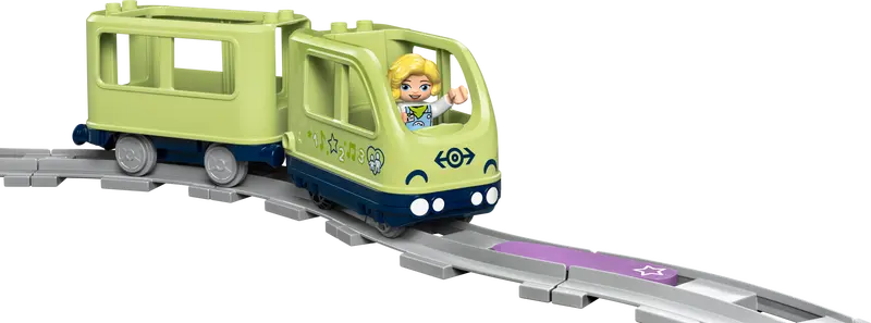 Dzieci same decydują, dokąd chcą jechać na wakacje – czeka je wesoła podróż pełna światełek i dźwięków.LEGO® DUPLO® Town Przygoda z interaktywnym pociągiem