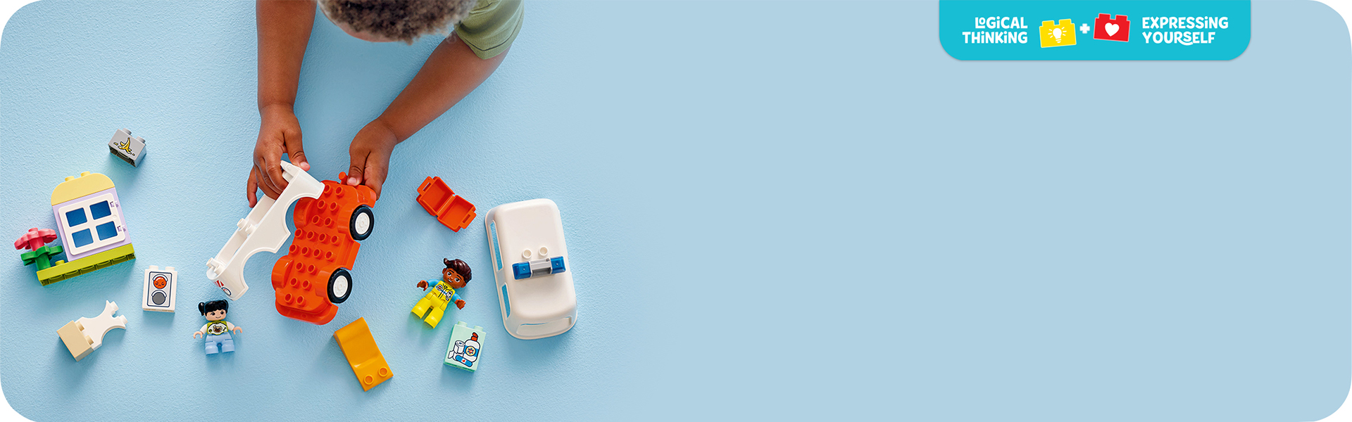 Dzieci będą wymyślać ciekawe opowieści z figurkami kierowcy i dziewczynki, sygnalizacją świetlną i domem do zbudowania.LEGO® DUPLO® Karetka z kierowcą