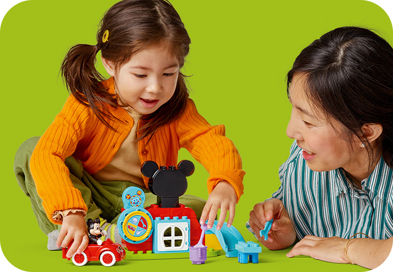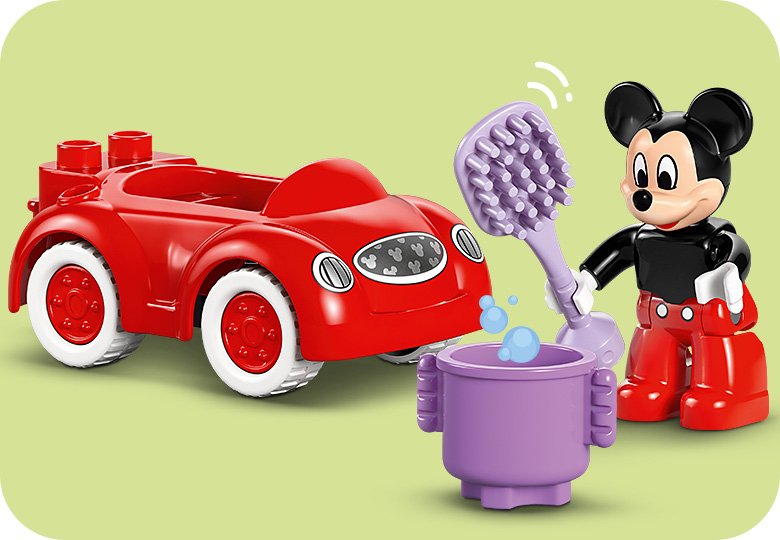 Dzieci ćwiczą łączenie kolorowych obrazków z akcesoriami.LEGO® DUPLO® | Disney Klub przyjaciół Myszki Miki i samochód