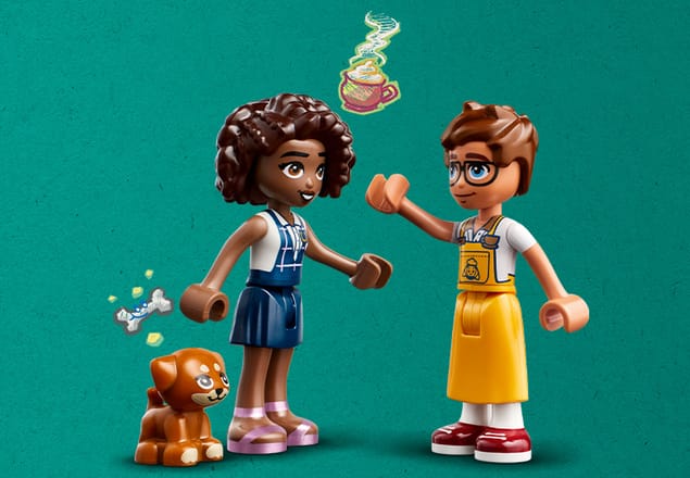 W zestawie Aliya i Jules z LEGO® Friends oraz figurka psa.