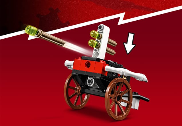 - Wystrzałowa zabawa – szkieletowym wojownikom towarzyszy szybkostrzelna podwójna kusza załadowana czterema strzałkami, która jest zamontowana na wozie, aby dać zapalonym fanom ninja jeszcze więcej możliwości zabawy