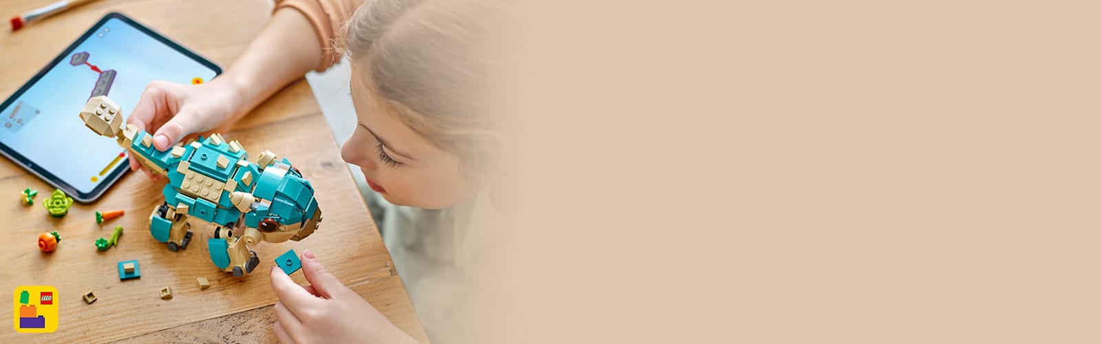 Dzieci zaopiekują się klockowym dinozaurem ze świata LEGO® Jurassic World i wymyślą mu przygody, a potem ustawią go na półce