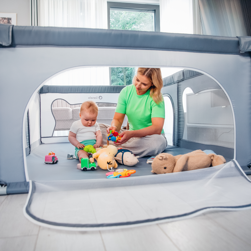 Kojec Lionelo pozwoli Ci stworzyć domowy plac zabaw - bezpieczny, pozbawiony ostrych krawędzi, posiadający miękkie podłoże, pełen ukochanych zabawek. To niezbędnik w każdym domu, w którym teren przejmuje coraz bardziej aktywny maluszek. Dzięki kojcowi trzymasz pieczę nad bezpieczeństwem dziecka, jednocześnie dając sobie przestrzeń na pozostałe obowiązki.