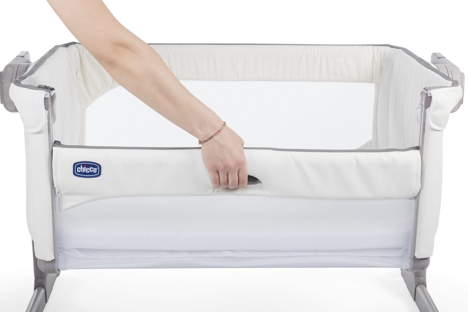 Chicco Next2Me to dostawka do łóżka dla noworodka i niemowlaka, dzięki której zarówno rodzice, jak i dziecko, mogą spać spokojniej. Maluszek śpi w swoim łóżeczku, ale jest wciąż blisko rodziców. To odpowiedź na często pojawiającą się wątpliwość: czy dziecko powinno spać w swoim łóżeczku, czy też w łóżku z rodzicami?