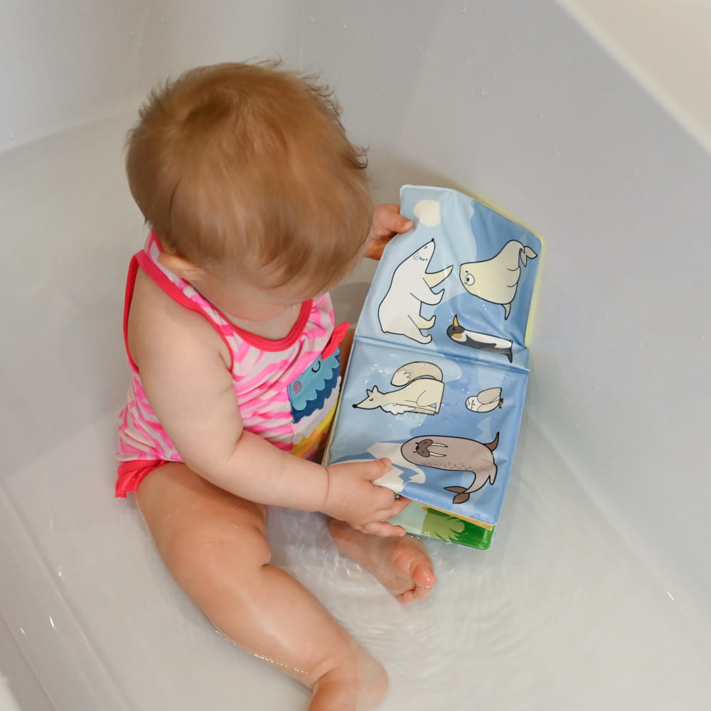 Książeczka jest bezpieczna dla dziecka, pobudza spostrzegawczość, małą motorykę, pamięć, koncentrację i chęć odkrywania. Wykonana jest z miłego w dotyku, miękkiego a zarazem wytrzymałego i wodoodpornego materiału.