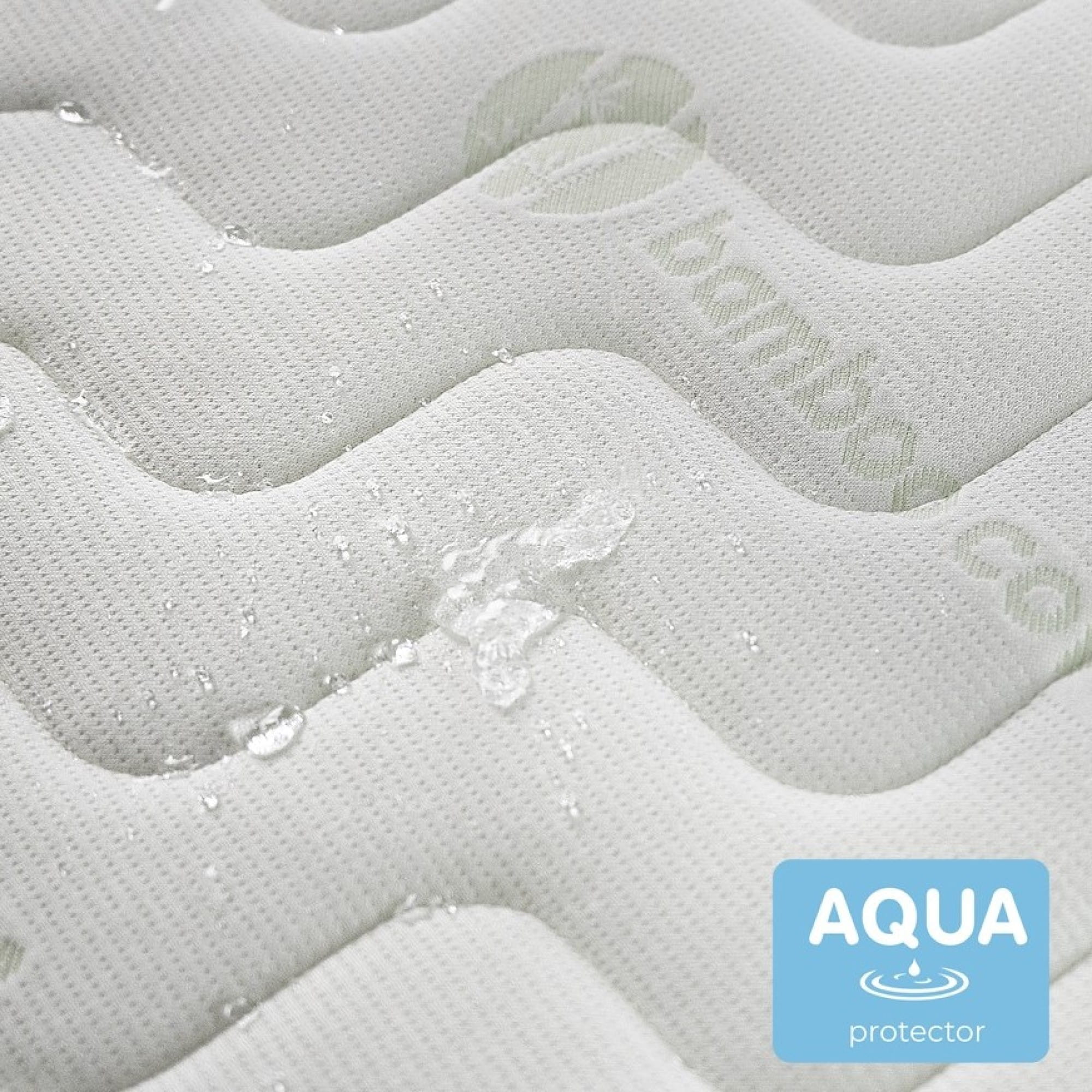 - Materiał bamboo cover z zintegrowaną warstwą hydrofobową chroniącą materac przed zamoczeniem niewielką ilością płynów.