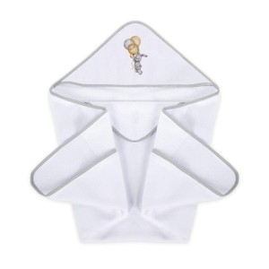 Wykonane zostało z bardzo chłonnej frotty, która jest niezwykle miękka, puszysta i przyjemna w dotyku. Okrycie osusza ciało Maluszka, a kapturek chroni główkę przed wyziębieniem. Posiada ozdobny haft na kapturku, oraz lamówkę która wykańcza produkt i nawiązuje do całej kolekcji Love&Nature. Dodatkową zaletą jest doszyty uchwyt, dzięki któremu możemy okrycie zawiesić. Rozmiar został dobrany tak, aby Maluszek w całości był otulony przyjemnym ciepłem. Do okrycia została dołączona poręczna myjka z muślinu, która delikatnie umyje ciało maluszka.