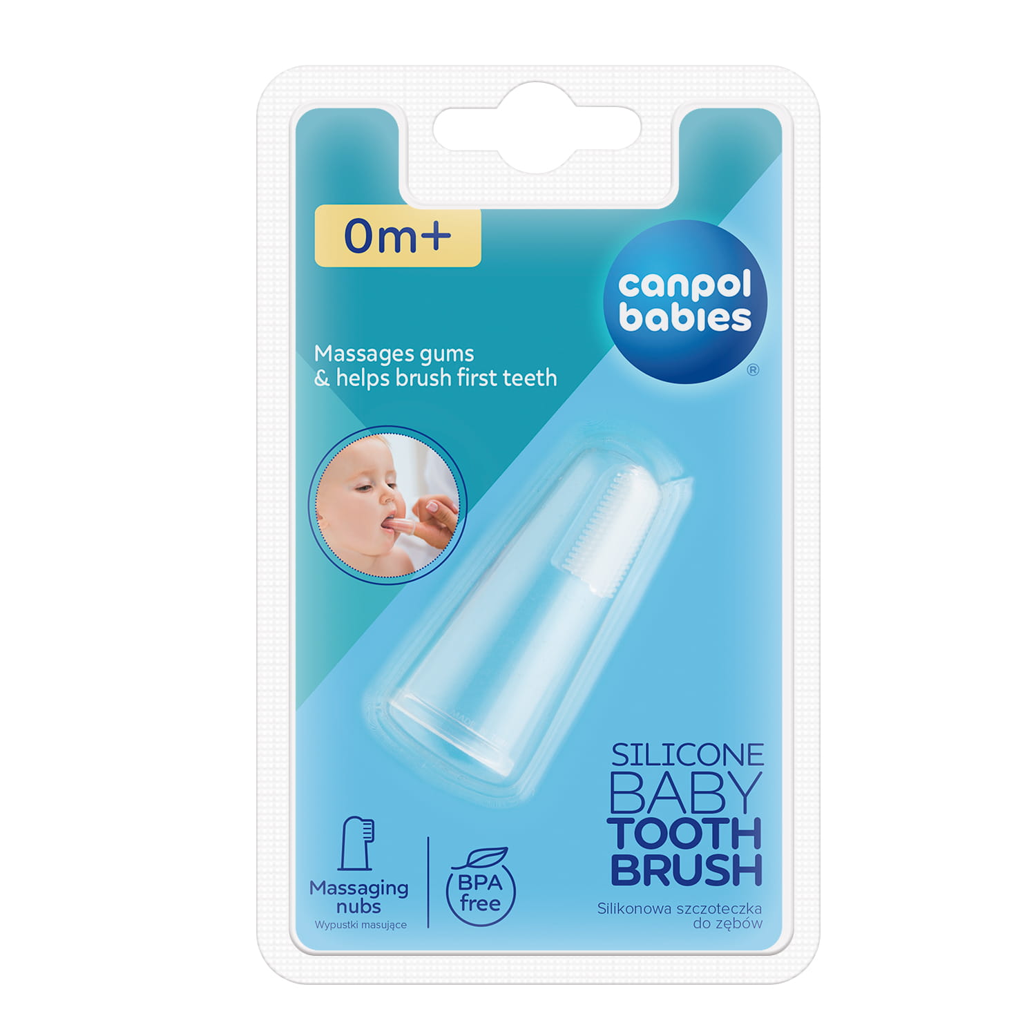 Szczoteczka do mycia pierwszych ząbków nakładana na palec. Wykonana została z miękkiego silikonu. Można ją stosować u dzieci, które jeszcze nie mają ząbków do masażu i codziennej higieny dziąsełek. Umożliwia delikatne czyszczenie bez ryzyka ich uszkodzenia.