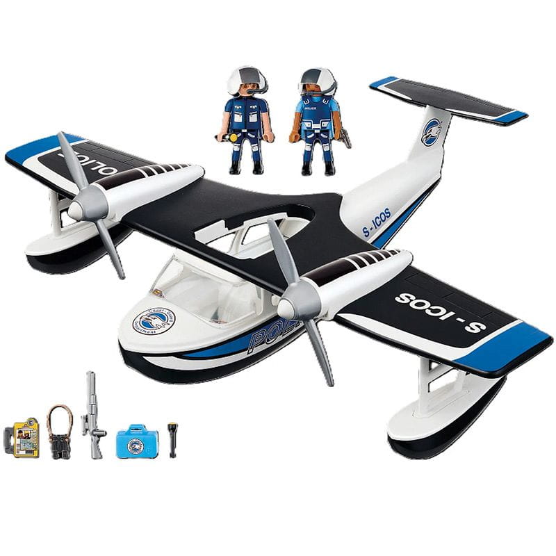 Playmobil Wodolot Policyjny. Ten pełen akcji zestaw ze świata tematycznego Action Heroes PLAYMOBIL sprawi, że serca dzieci zabiją szybciej. Dzięki sprytnej konstrukcji z korpusem wypornościowym i pływakami, samolot unosi się na wodzie. Obracające się śmigła nadają samolotowi dynamikę, a rozpiętość skrzydeł sięgająca aż 40 cm. gwarantuje wiele możliwościami kreatywnej zabawy. Wewnątrz znajduje się miejsce dla figurki oraz pasażera, a figurki 2 policjantów wraz z akcesoriami tematycznymi również znajdują się w zestawie. Dzięki bogatemu wyposażeniu i wysokiej jakości wykonaniu, ten samochód patrolowy PLAYMOBIL to idealny dodatek do każdej policyjnej kolekcji.