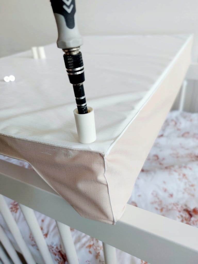 Montowany na łóżeczku, pozwala na wygodne i bezpieczne przewijanie oraz zmianę pieluszki.