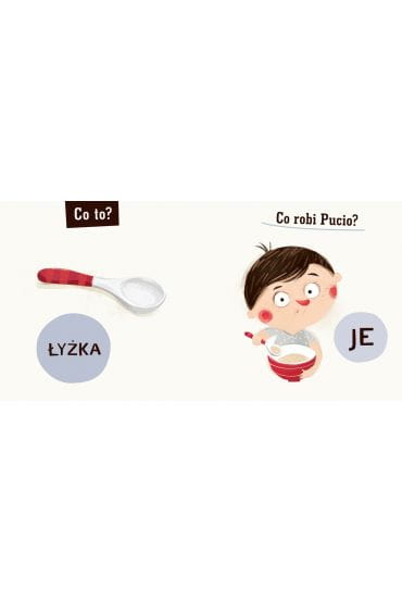 Pucio to sympatyczny maluch, bohater kilku książek wspomagających rozwój mowy. Chłopczyk ma dziadków, rodziców, ciocie, starszą siostrę Misię i młodszego brata Bobo. Ponadto ma psa i kota. Ulubionego bohatera najmłodszych czytelników poznajemy tym razem w codziennych sytuacjach. Każda z nich będzie okazją do zapoznania się z podstawowymi rzeczownikami i czasownikami, które niebawem powinny znaleźć się w słowniku dziecka. Książka “Co robi Pucio?” ma zachęcać do kreatywnej zabawy z maluchem oraz stymulować rozwój mowy i zasób słownictwa dziecka.