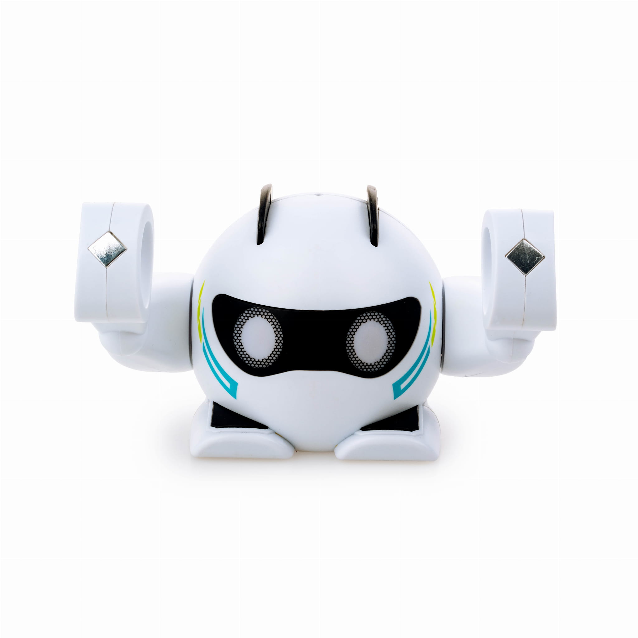 i dotykać jego drugiej ręki, aby odtwarzać melodię za pomocą pojedynczych dźwięków. W zabawie może uczestniczyć więcej dzieci. Jeśli złapią się one za ręce i stworzą zamknięty obwód z robotem, tak, że dwoje z nich, złapie za ręce także robota, odtwarzanie muzyki również zostanie uruchomione. Roboluś reaguje na klaśnięcie! Kiedy muzyka ucichnie, klaśnięcie nad czujnikiem, umieszczonym na głowie robota, „obudzi’” go do dalszej zabawy.