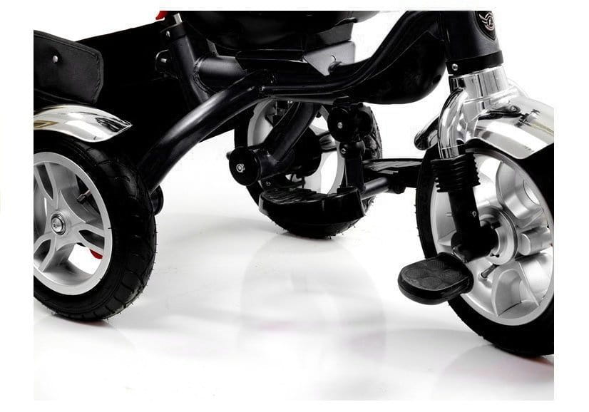 Przedstawiony rowerek dziecięcy można przekształcać na wiele sposobów, dzięki czemu rośnie on razem z dzieckiem - bez potrzeby zamiany sprzętu na nowy. Wraz ze wzrostem wieku dziecka istnieje możliwość odpięcia prowadnicy, tym samym umożliwiając maluchowi samodzielną jazdę. Pompowane koła wysokiej jakości zapewniają komfort jazdy, a pięciopunktowe, zapinane pasy i blokada tylnych kół, zwiększają bezpieczeństwo dziecka podczas użytkowania rowerka.