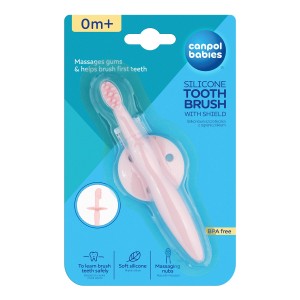 Specjalny ogranicznik chroni przed zbyt głębokim włożeniem szczoteczki do buzi dziecka. Szczoteczka może być stosowana również jako gryzak, u dzieci które nie mają jeszcze ząbków, do masażu i codziennej higieny dziąseł. Schłodzona w lodówce przed podaniem przyniesie ulgę w okresie ząbkowania.