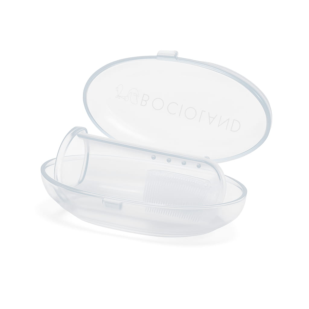 - Zestaw: 1× szczoteczka na palec, 1× etui z logo BOCIOLAND