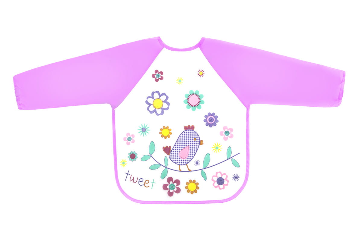 Śliniak ceratowy z długimi rękawkami został zaprojektowany tak, aby chronić ubranie dziecka przed zabrudzeniem podczas karmienia, zabaw plastycznych czy w żłobku/przedszkolu. Produkt wykonany jest z ceratowego materiału EVA, dzięki czemu jest łatwy w czyszczeniu – wystarczy przetrzeć wilgotną ściereczką lub umyć gąbką z płynem do naczyń.