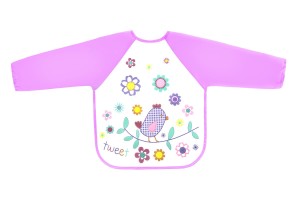 osłona całego przodu ciała i długie rękawki – większa ochrona od klasycznego śliniaka;