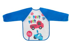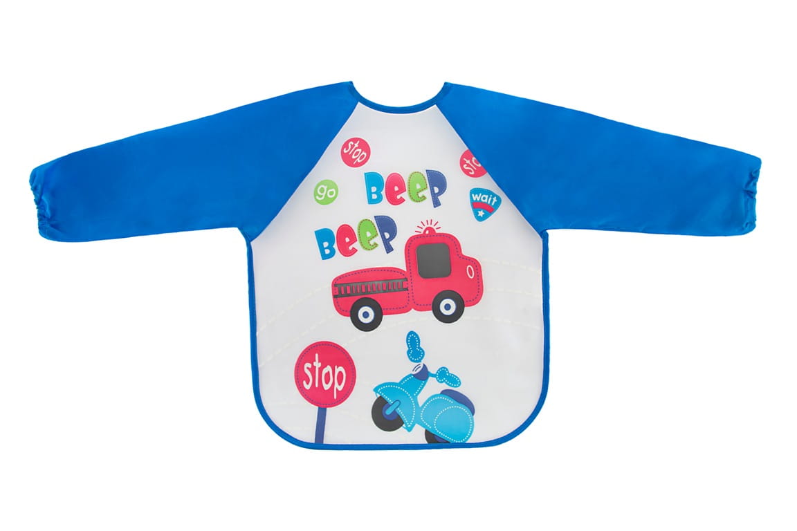 Śliniak ceratowy z długimi rękawkami został zaprojektowany tak, aby chronić ubranie dziecka przed zabrudzeniem podczas karmienia, zabaw plastycznych czy w żłobku/przedszkolu. Produkt wykonany jest z ceratowego materiału EVA, dzięki czemu jest łatwy w czyszczeniu – wystarczy przetrzeć wilgotną ściereczką lub umyć gąbką z płynem do naczyń.
