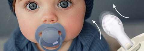 Dynamiczny smoczek, dzięki unikalnej budowie z silikonu o różnej grubości, rozciąga się i kurczy zgodnie z rytmem ssania dziecka. Dzięki temu chroni jego odruch ssania i nie ma niekorzystnego wpływu na karmienie piersią.