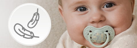 Gumka smoczka jest spłaszczona, a szyjka jest tak cienka, by umożliwić dziecku swobodne domykanie i odpowiednią pracę dziąseł podczas ssania oraz zapewnić wystarczającą ilość miejsca w buzi na pracę języka, co zmniejsza ryzyko wad zgryzu i wymowy*.