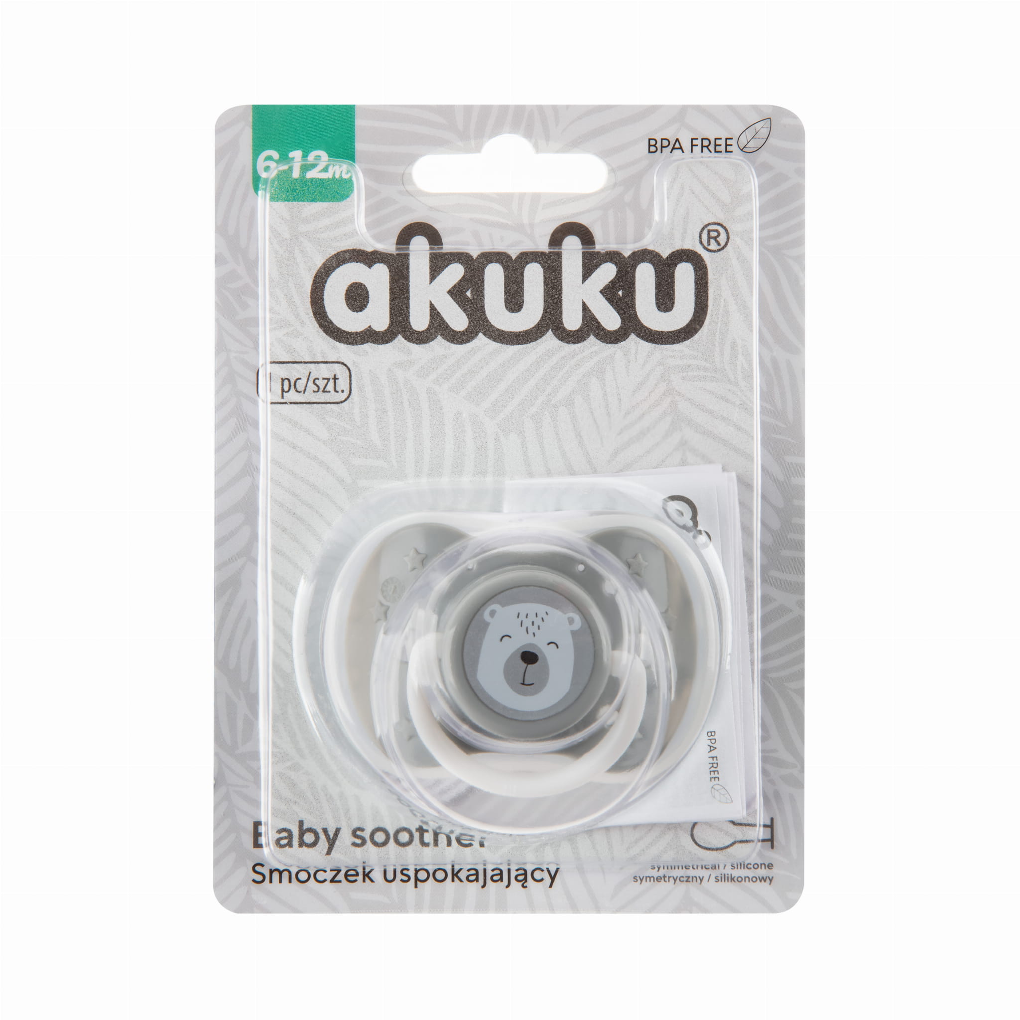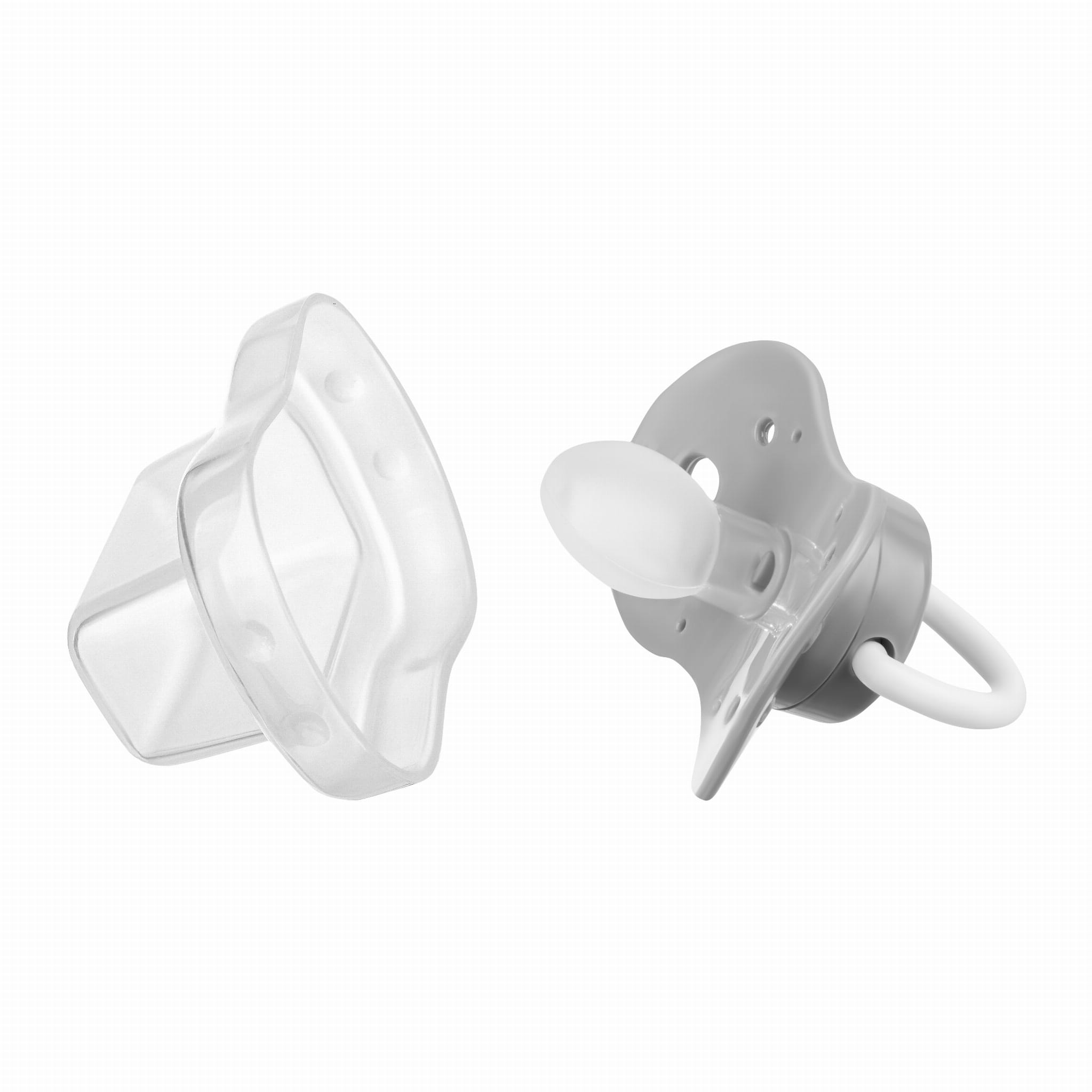 Smoczek uspokajający wykonany z najwyższej jakości, bezzapachowego i bezsmakowego silikonu. Wyposażony w gumkę o symetrycznym kształcie. Zapewnia swobodne oddychanie i połykanie śliny. Smoczek dobrze odpowietrza się, dzięki specjalnym otworom wentylacyjnym na tarczce.