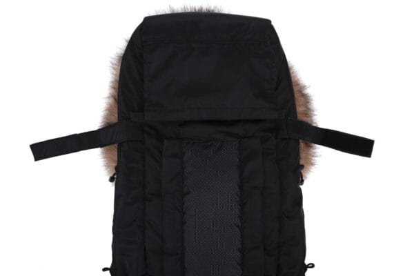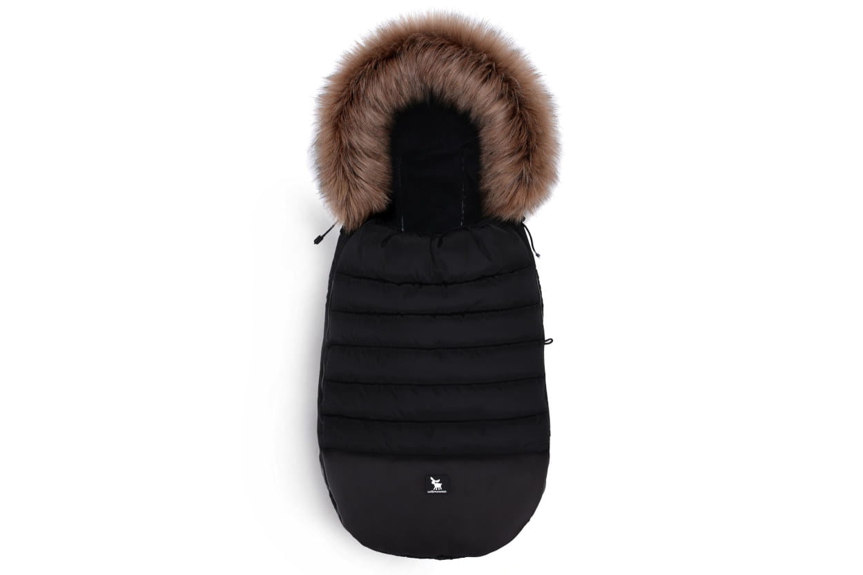 Ekskluzywny model z wstawką z ekologicznej skóry. Wykończony odpinanym ekologicznym futerkiem. Śpiworek jest bardzo ciepły, wykonany z miękkiej atestowanej tkaniny o satynowo-matowym wykończeniu, która zapewnia ochronę dziecka przed wiatrem śniegiem i deszczem.