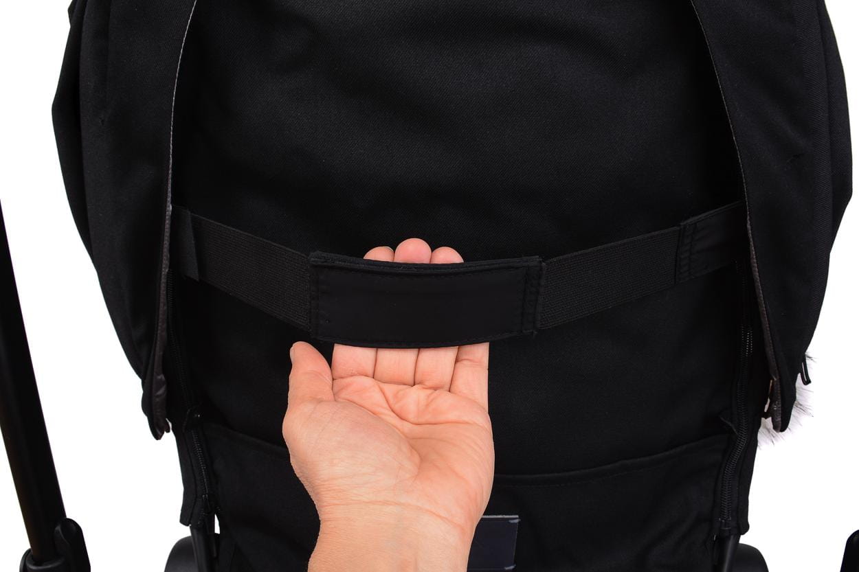 - Śpiworek posiada wiele zabezpieczeń zapobiegających przemieszczaniu i zsuwaniu się śpiworka z wózka: