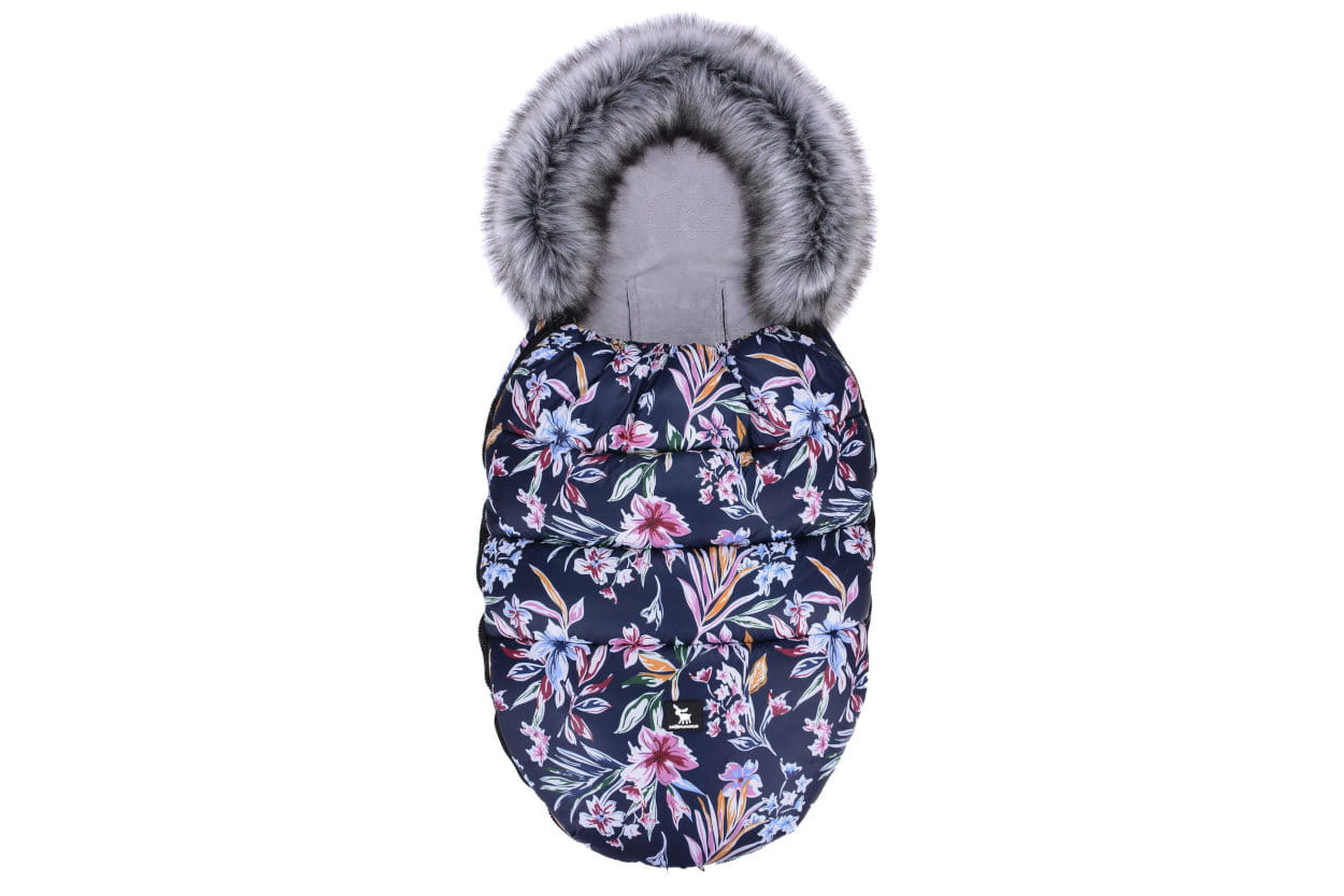 Model z limitowanej wzorzystej tkaniny z odpinanym ekologicznym futerkiem. Śpiworek jest bardzo ciepły, wykonany z miękkiej atestowanej tkaniny, która zapewnia ochronę dziecka przed wiatrem śniegiem i deszczem. Posiada wiele zabezpieczeń przed zsuwaniem się z siedziska wózka zapewniając dziecku komfort i wygodę.