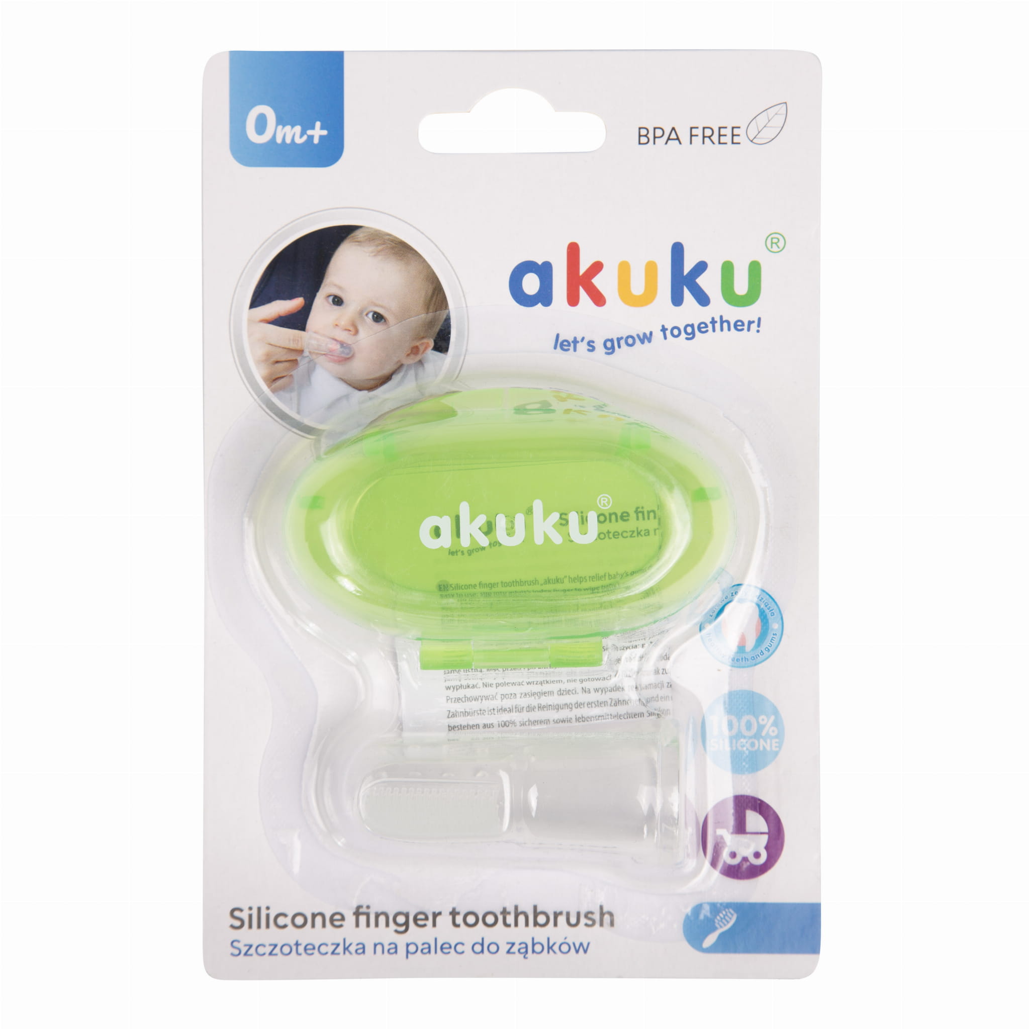 Silikonowa szczoteczka do mycia pierwszych ząbków malucha oraz masażu dziąseł powinna być stosowana już u najmłodszych dzieci, nawet tych, które nie mają jeszcze ząbków, aby uczyć je nawyku dbania o higienę jamy ustnej. Specjalne wypustki pozwalają dokładnie wymasować delikatne dziąsła. Konstrukcja szczoteczki umożliwia dotarcie do trudno dostępnych miejsc i usunąć resztki pokarmu. Szczoteczka pozwala rodzicom bezpiecznie czyścić wrażliwe dziąsła/ząbki niemowlaka, bez obawy ich uszkodzenia, co może nastąpić przy stosowaniu szczoteczek tradycyjnych i zniechęcić dziecko do mycia ząbków w przyszłości. Wykonana z miękkiego i bezpiecznego silikonu. W komplecie z etui do higienicznego przechowywania szczoteczki.