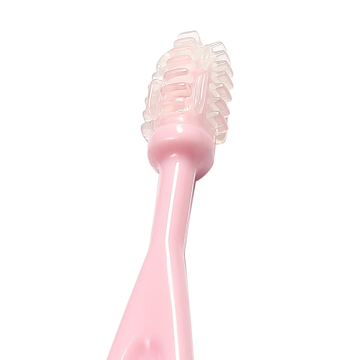 Krok 1 to silikonowa szczoteczka do dziąseł. Krok 2 - silikonowa szczoteczka do mycia pierwszych ząbków. Krok 3 - szczoteczka do zębów z miękkim włosiem. Szczoteczki pomagają w utrzymaniu higieny jamy ustnej a także uczą dzieci codziennej pielęgnacji. Pierwsza szczoteczka czyści dziąsła i masuje je przynosząc ulgę w okresie ząbkowania. Ostatnia szczoteczka z miękkim włosiem służy dziecku do samodzielnego mycia zębów. Szczoteczki wykonane są z higienicznych materiałów, nie zawierają Bisfenolu A
