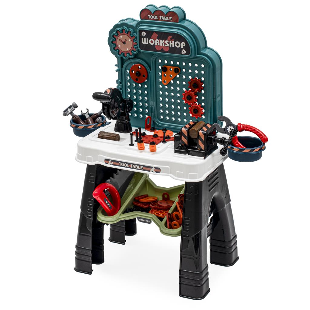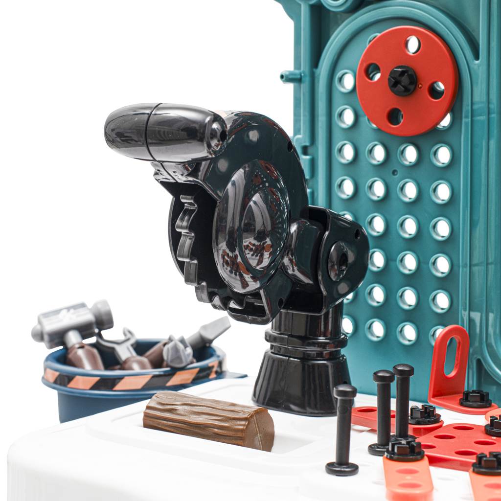 Warsztat dla dzieci ze 103 narzędziami to świetne narzędzie dla małych entuzjastów obróbki drewna, montażu lub rzemiosła. Warsztat zawiera śruby, piłę, imadło, szczypce i nie tylko.