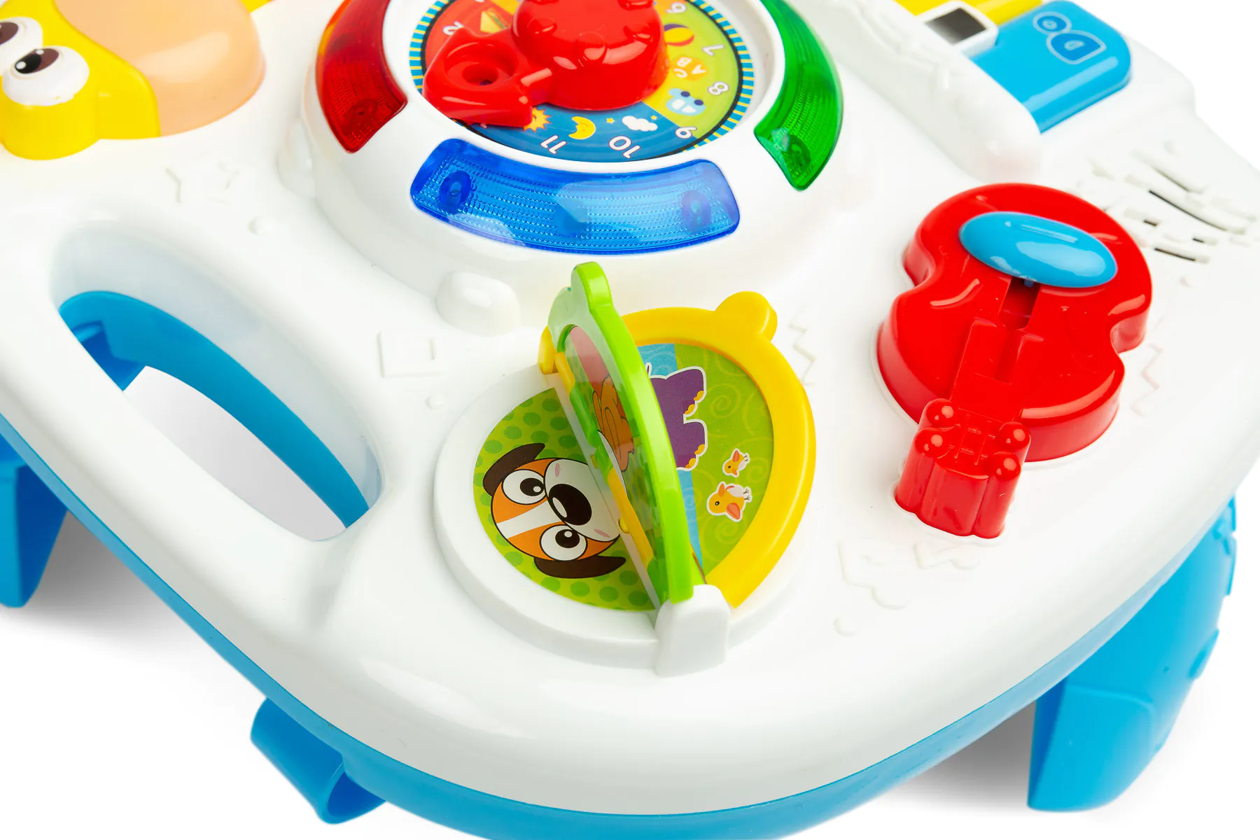 Edukacyjny Stoliczek Muzyczny od TOYZ, to sporo świetnej zabawy dla każdej pociechy. Zabawka jest wyposażona w głośnik grający wiele melodii gdy dziecko dotyka jej elementy. Stoliczek zawiera: