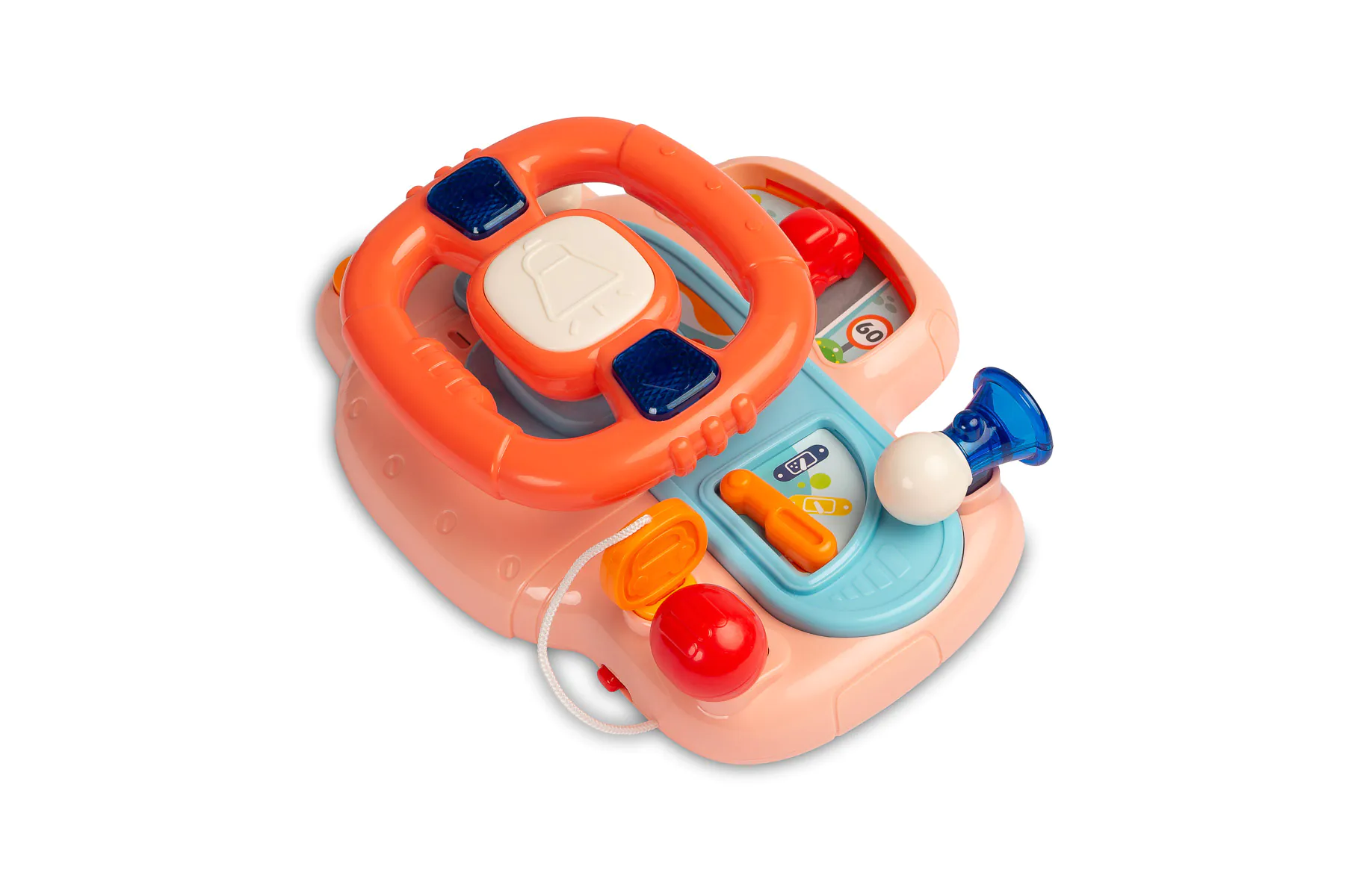Edukacyjna Kierownica od TOYZ to kolorowa zabawka, która umili czas Twojego brzdąca. Panel kierownicy zawiera przyciski i światełka, które współgrają z głośnikiem wydającym przyjemne melodie i dźwięki samochodu.