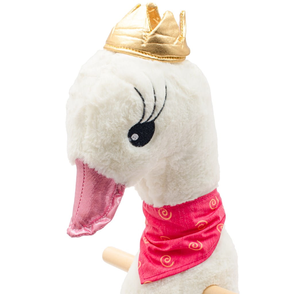 Zabawka została wykonana z miękkiego, przyjemnego w dotyku materiału, który zapewnia dziecku komfort podczas zabawy, jednocześnie dodając walorów estetycznych – doskonale komponuje się z wystrojem pokoju dziecięcego. Wbudowana melodia sprawia, że bujanie się na łabędziu to jeszcze większa frajda, stymulując rozwój zmysłu słuchu i zachęcając dziecko do aktywnej zabawy. Zabawka jest również wyposażona w kółka, co umożliwia swobodne poruszanie się po różnych powierzchniach, zapewniając przy tym bezpieczeństwo i stabilność.