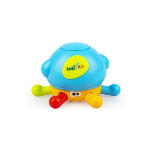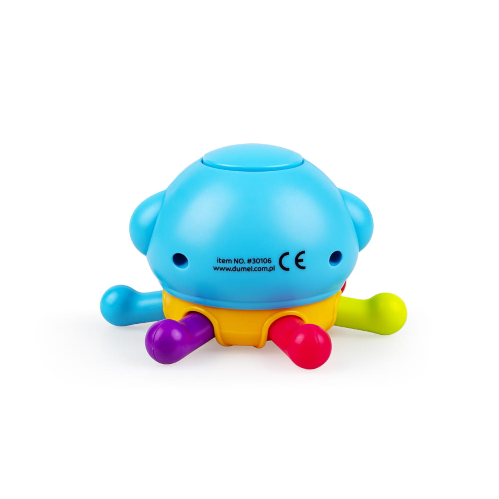 Kompaktowa ośmiornica wydaje wesołe dźwięki, które zabawią malucha. Na czubku jej głowy znajduje się ukryta piszczałka. Ramiona ośmiornicy można odginać, której to czynności towarzyszy zabawne terkotanie. Terkocze też sama głowa ośmiornicy , podczas przekręcania jej dookoła własnej osi. Kształt zabawki dostosowany jest do małych rączek, co czyni ośmiorniczkę wymarzonym towarzyszem pierwszych, sensorycznych zabaw, zarówno w domu, jak i w podróży.